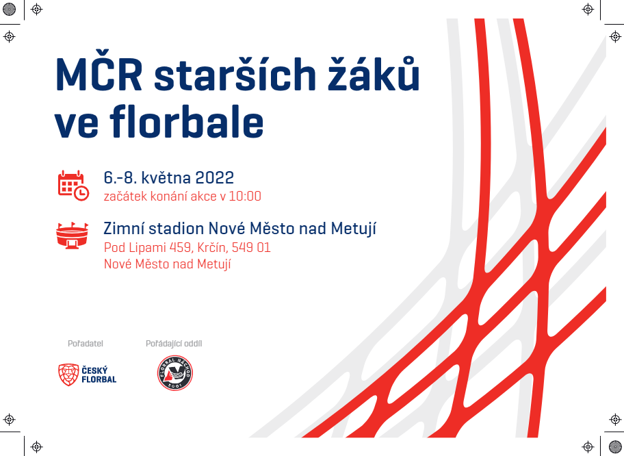 Již tento víkend 6. až 8. května se uskuteční na zimním stadionu v Novém Městě nad Metují mistrovství republiky starších žáků, které pořádá sportovní oddíl Florbal Náchod. Do Nového Města nad Metují se sjedou utkat florbalisté dvanácti nejlepších týmů z Česka, mezi něž patří i náchodský tým. Přijďte se podívat na jednu z největších sportovních akcí ve městě v tomto roce a podpořit náchodské starší žáky v boji o nejlepší umístění