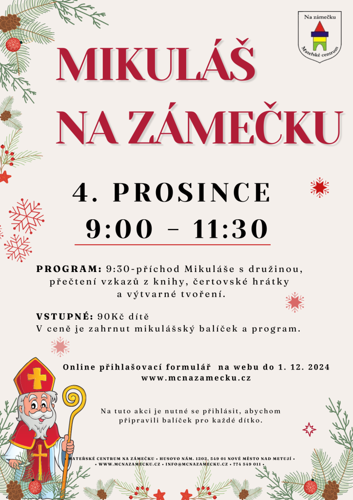 Vstupné: 90 Kč / dítě. V ceně je zahrnut mikulášský balíček a program. Nutná rezervace na webu.