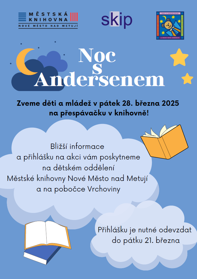 Zveme děti a mládež v pátek 28. března na přespávačku v knihovně! Bližší informace a přihlášku na akci vám poskytneme na dětském oddělení, i v pobočce knihovny ve Vrchoviny. Přihlášku je nutné odevzdat do pátku 21. března.