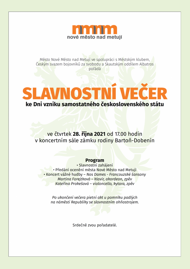 Slavnostní večer ke Dni vzniku samostatného československého státu