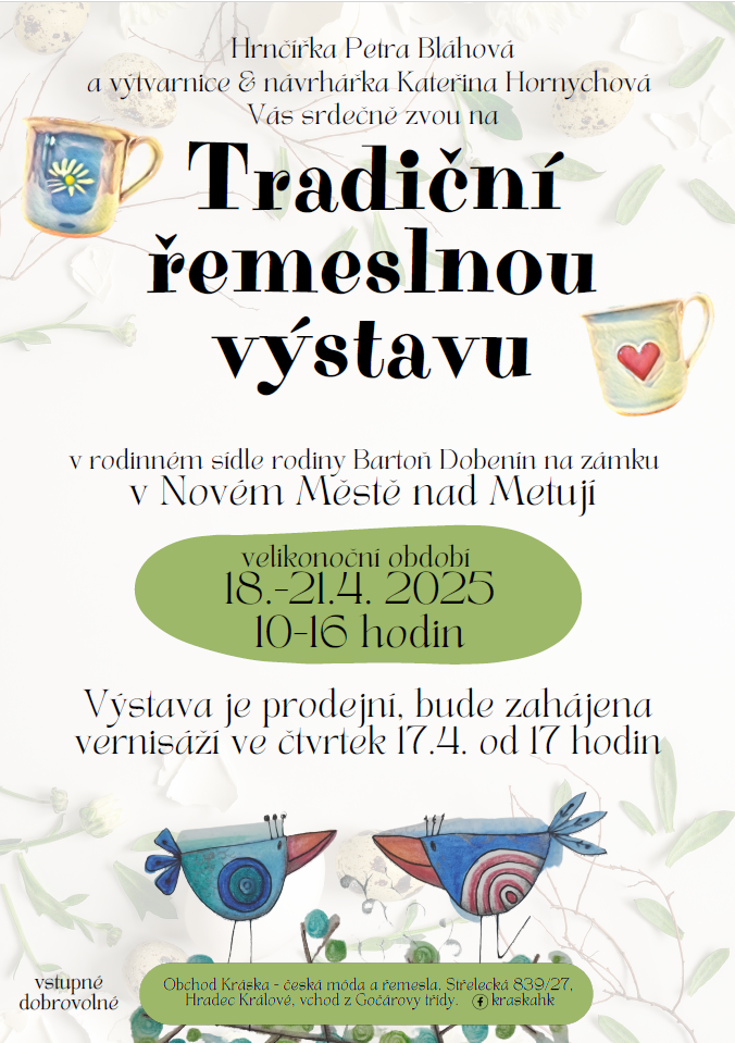 Výstava je prodejní, bude zahájena vernisáži ve čtvrtek 17. 4. 2025 od 17 hodin.