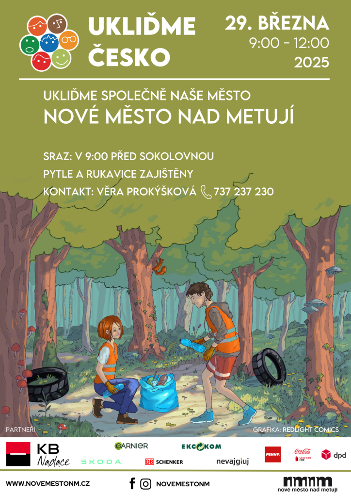 Po roce se naše město opět připojí k celorepublikové akci "Ukliďme Česko", která se koná v sobotu, 29. března 2025 od 9.00 hod. do 12.00 hod. Zapojte se s námi do této akce a pojďte uklidit různá místa našeho města.