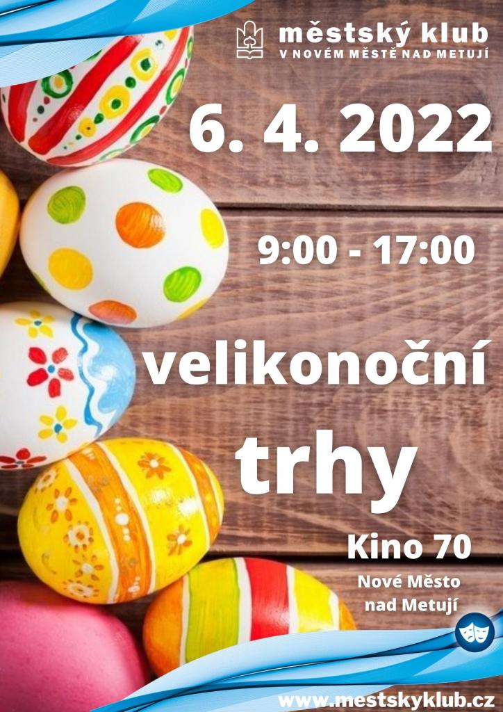 Tradiční velikonoční prodejní trhy v prostorách Kina 70, možnost nákupu velikonočních dekorací, vykrajovátek, občerstvení.