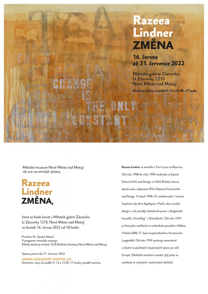 Výstava grafických děl umělkyně z Hildenu, paní Razeei Lindner. Za svou práci získala mnohá ocenění a její grafiky jsou součástí mnoha soukromých i veřejných sbírek.